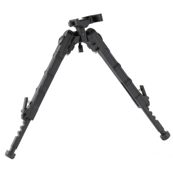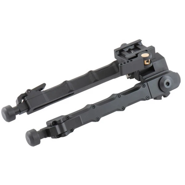 - Bipied disposant d’un bras pliable robuste avec ressort de tension extérieur.